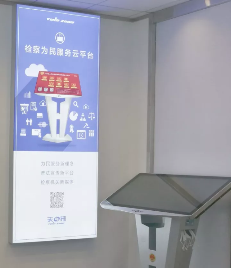 映入大家眼帘的这款一体机便是检察为民服务云平台了。相信大家对于银行里的一体查询机并不陌生,这款检察为民服务云平台是针对检察院量身定制,大家可以很方便的查询案件信息、查看检察院各项职能、检察院也能够直观清晰的了解群众的心声,更好的为人民群众服务!