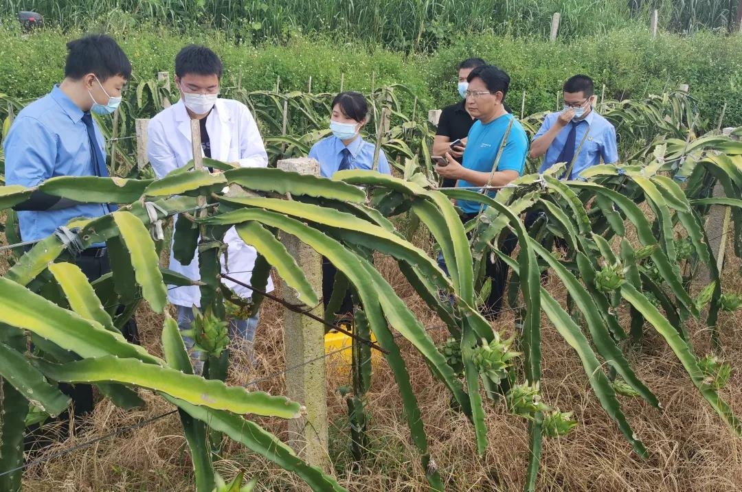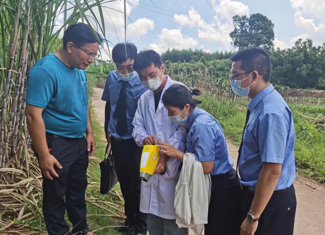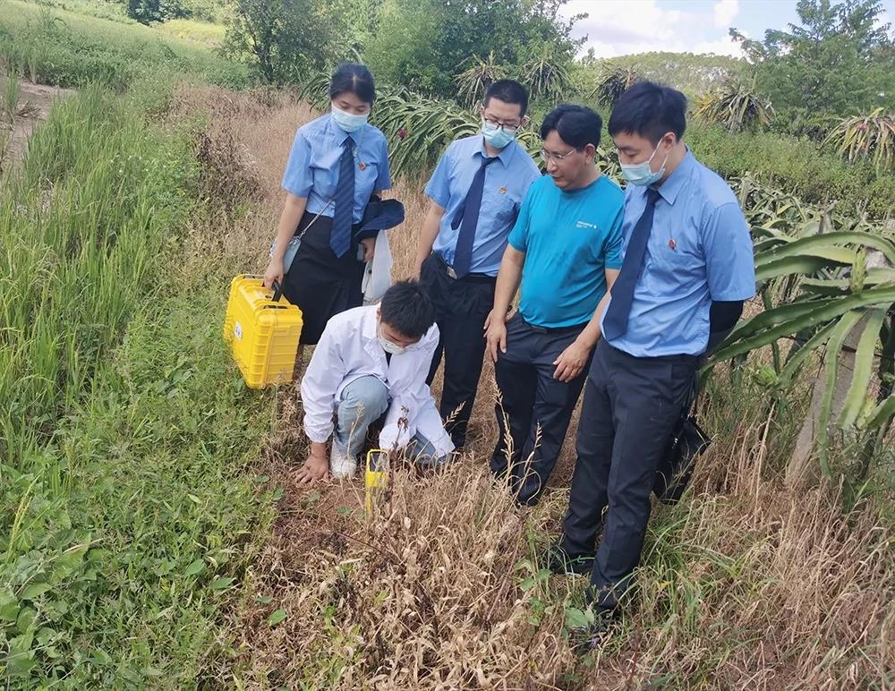 近日,南宁市良庆区人民检察院为助力城区乡村振兴,打造“乡镇特色农产品”服务,积极开展公益诉讼守护美好生活专项活动,派出公益诉讼办案组和技术部门联系偕同北京天轴科技公司技术人员提供技术设备支持,共赴良庆区那陈镇。在当地农业服务中心的协同下,对那陈镇西宁村下敏村屯的火龙果种植地、甘蔗种植地、柠檬柑橘种植地以及那陈镇畔生园农庄百香果种植地进行土壤环境质量实地检测。