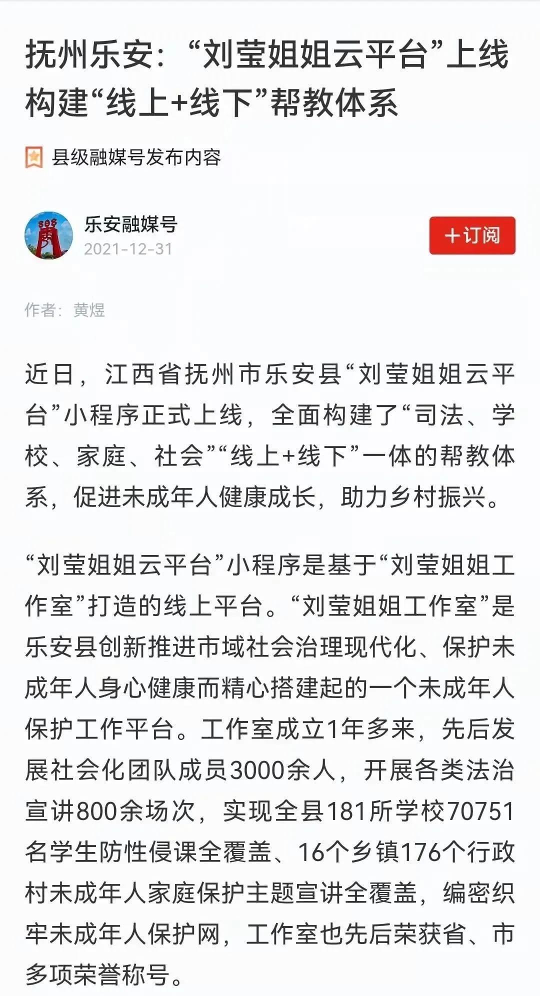 正义网、乐安县融媒体、《临川晚报》等媒体,都对“刘莹姐姐云平台”进行了专题报道。