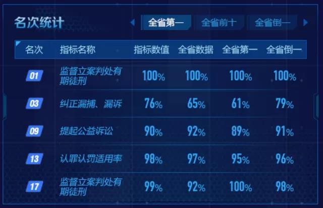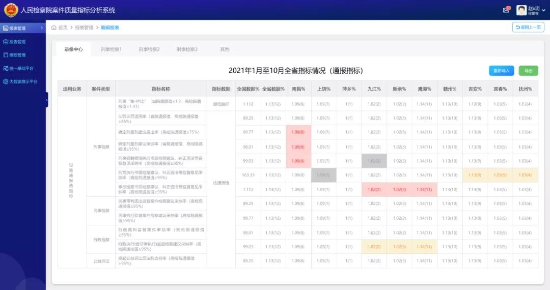 案件质量指标分析系统,是天轴依据最高人民检察院《检察机关案件质量主要评价指标》内容研发的系统,系统涵盖了“四大检察”“十大业务”的主要案件类型、主要办案活动、主要诉讼流程,通过既定的算法,计算出指标结果,实现指标的趋势分析、对比分析、量化排名等主要功能,并以图形、表格以及报告等多种形式进行可视化展示,分析结果可导出为文件。
