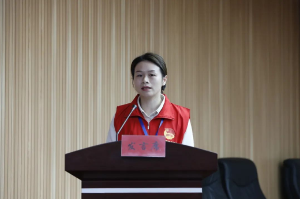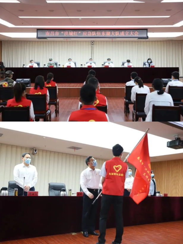 团区委书记晏佩琦作为东湖区“洪城红”青年应急队大队教导员作了表态发言;东青志愿者协会会长曹智超作为大队长接过授旗。