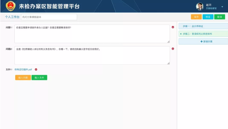 为办案检察官提供办案方案模板设计功能,程序化办案全过程。