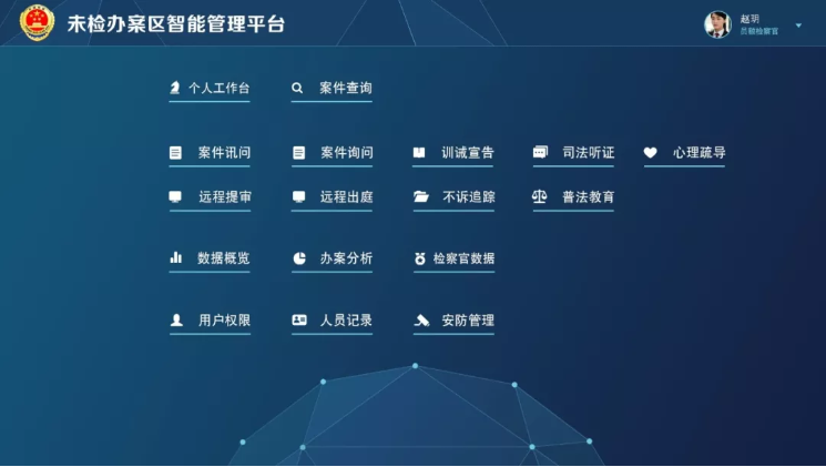 在未检办案区中,部署有“天机”未成年人检察办案区智能管理平台,配合未检办案区场馆设计和智能化硬件的使用,可全面实现对未检办案区的有效管理。