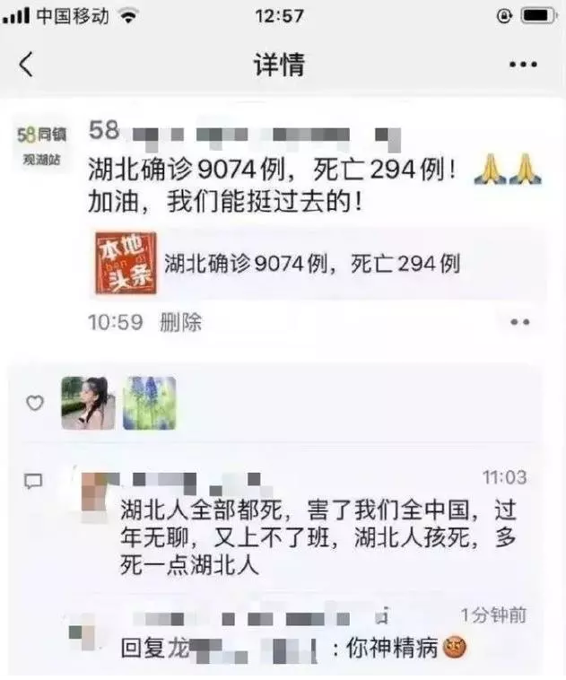 近期,有网友反映,网络上流传着这样一张截图。截图显示,有人公然在网络上发布“湖北人全部都死”的言论。该言论造成了恶劣的社会影响,广大网友对此表示极度愤慨。