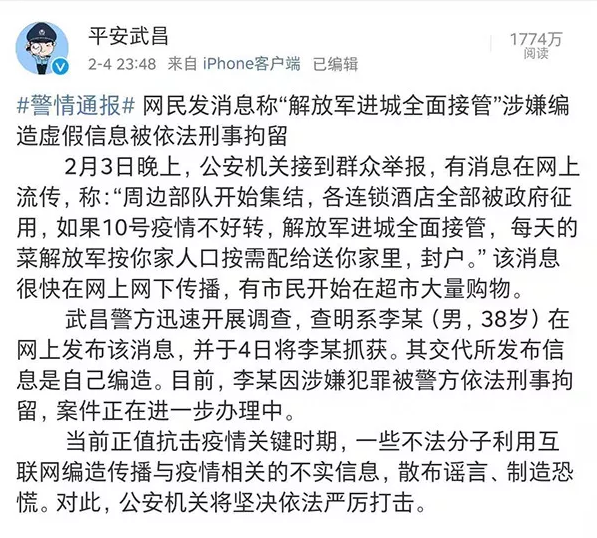 全国各地都出现了造谣者,这些人不管是出于好奇心理,还是趁机谋取暴利,都严重违反了我国法律。在当前全国众志成城抗击新型冠状病毒疫情的严峻形势下,相关谣言信息将会误导公众,造成不良社会影响。