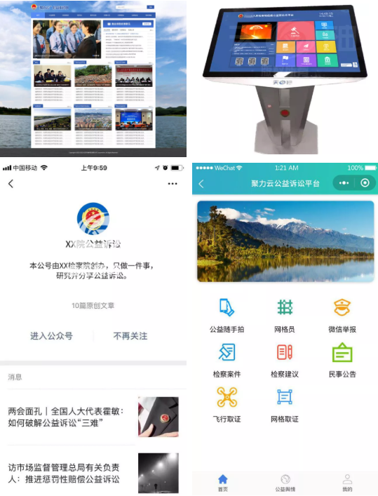 覆盖了网站、web端、手机app、小程序、微信公众号等多个应用端,可为公益诉讼在线索获取、调查取证、分析研判和鉴定评估等方面的问题提供有效的解决方案。实现公益诉讼业务“全景化掌控”。